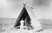 Sir George Airy, Astronomer Royal, 1835 - 1881, was a prime mover in the British and international efforts to observe the nineteenth century Transits of Venus and in inducing his masters at the Admiralty to send Naval expeditions to transport expeditions to remote places. (RAS ADD MS 94/58) | A group of the observers for the British expeditions to the 1874 Transit are photographed, probably in Greenwich Park, as they assemble with the instruments which are tested before packing for shipment. The gentleman in mutton-chop whiskers and smoking cap, centre front row, is Captain (later Colonel) Tupman, Royal Marines Artillery, who effectively acted as Assistant Director of the British transit effort under Airy, while to his right (viewer's left) is Father Stephen Perry, SJ, of Stonyhurst College, who was in charge of the expeditions to Kerguelen Island (1874) and Madagascar (1882). (RAS ADD MS 96, p. 1) | Commander Pelham Aldrich, Royal Navy, the Captain of the survey vessel HMS Fawn, prepares to observe the 1882 Transit from an improvised tent observatory in Madagascar. This officer was a significant participant in various explorations including the oceanographic circumnavigation of HMS Challenger and an Arctic expedition under Captain Nares. This image has only recently been identified by comparison with crew photographs. It well illustrates the active part played by officers and men of the Fleet in the expeditions whose personnel and instruments their ships transported. (RAS ADD MS 209, p 21 [middle]) | ||