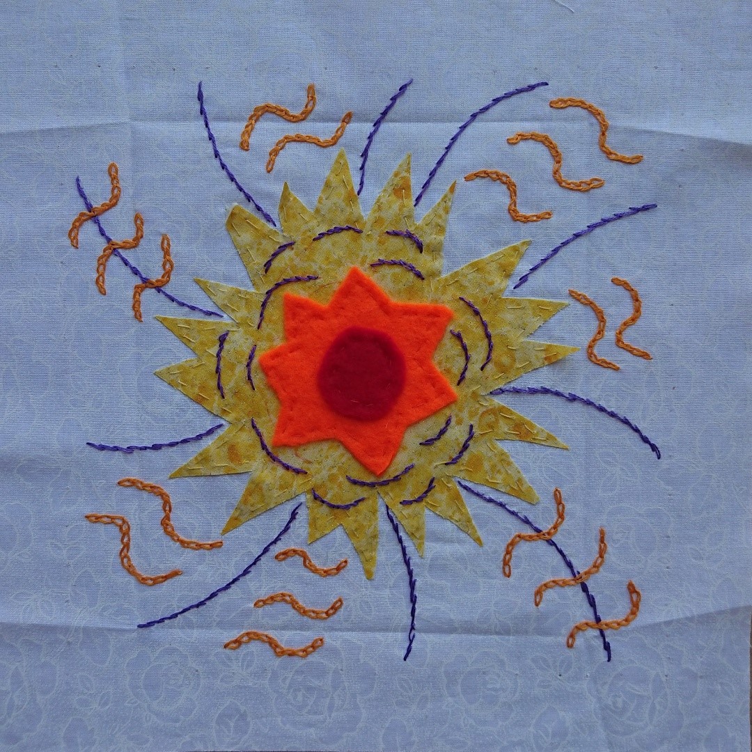 "It was an adaptation of an embroidery design which I copied from one of my husband's papers, published in Solar Physics, volume 20, 1971. Since I made it ,it has always (over 45 years) hung in our dining room!"